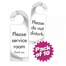 Excl. Vat: £5.00 Incl. Vat: £6.00Make sure you're giving your customers top quality notices to use when staying at your hotel, B&B or other business. These full colour notices will give them the option to inform staff not to disturb them, as well as the reverse side informing staff that the customer would like their room serviced. These notices are a brilliant option when looking to increase the professionalism of your business.