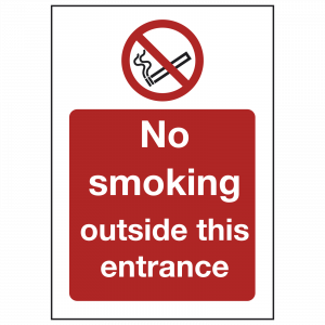 Appropriately inform the general public that this is a no smoking outside this entrance. Complies with the Smoke-free (Signs) Regulations 2007. Conforms to EN ISO 7010:2012.