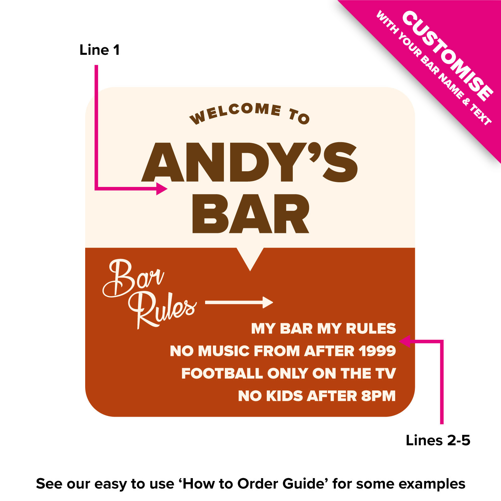 Personalised Coasters with Free Coaster Holder - Bar Rules - Style 2 - Burgundy & Brown