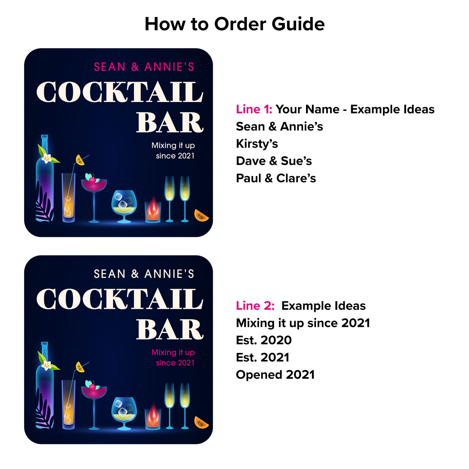 Personalised Bar Drip Mat/Bar Runner - Cocktails - Style 6 - Design 1