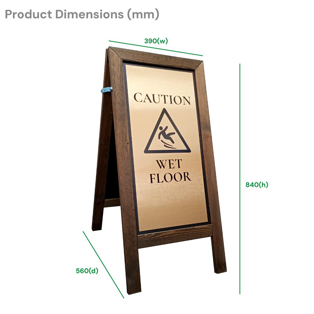 - Stable, freestanding design for high-traffic areas Elegant alternative to plastic floor signs