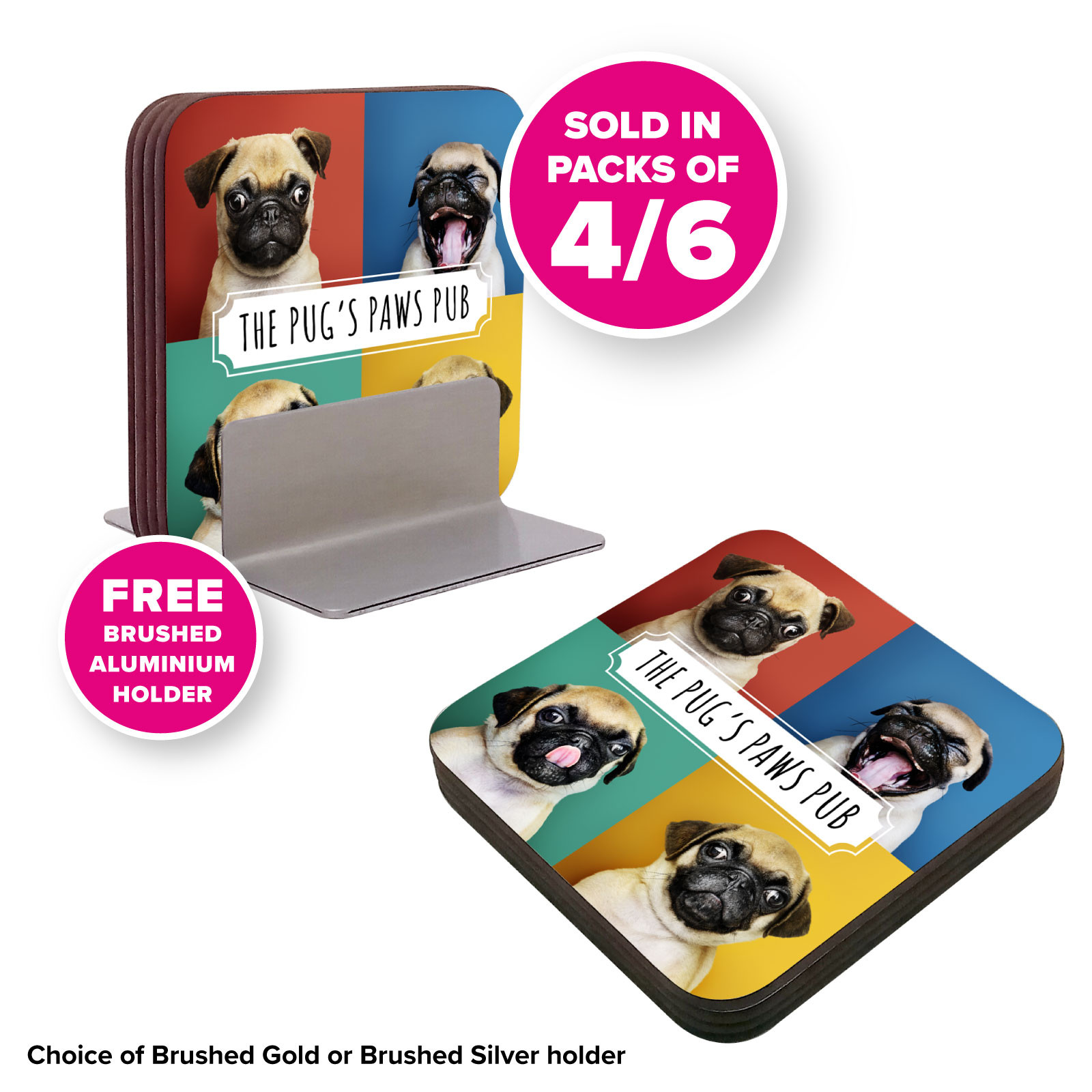 Pack of 4 or 6 Coasters with Free Coaster Holder